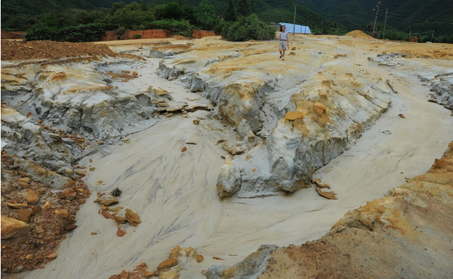 選礦場面積有50多畝,是由良田、山地及水庫組成。選礦場原先用的都是土法選礦,大量有毒元素及重金屬滲透到土壤之中。7月16日記者來到選礦場,迎面撲來的氣味十分刺鼻,三個小水塘里面的水變成暗紅色,許多地方已變成鹽堿地,到處都是溝壑縱橫。村民告訴記者,每到雨天,雨水沖刷流經(jīng)的地方,草木枯死,河中所有魚蝦全部死光。沖刷的雨水**后流入到信江直到鄱陽湖,影響了沿岸數(shù)百萬居民飲用水。