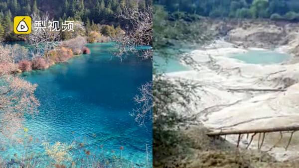 曾經(jīng)Z名景點(diǎn)火花海水震后慘不忍睹。在大自然面前,一切都是渺小的。真心希望九寨溝早日恢復(fù)原貌!