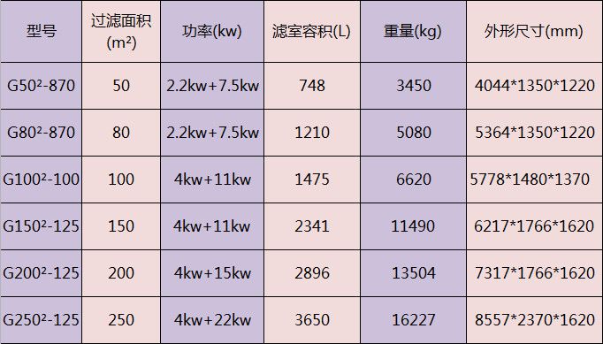 廂式壓濾機(jī)參數(shù)