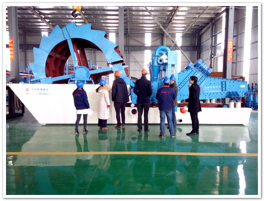 開闊敞亮的生產(chǎn)車間中,隆中重工外貿(mào)龐總正認真為澳大利亞客戶講解隆中新型細沙回收機的工作原理及細節(jié)。澳大利亞客戶不時為機器設(shè)計而驚嘆。