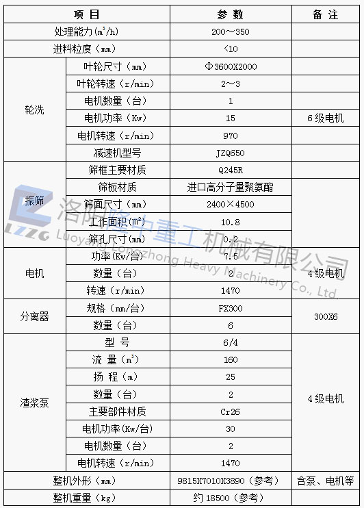1、洗砂回收一體機(jī)LZ36-180主要技術(shù)參數(shù)如下: